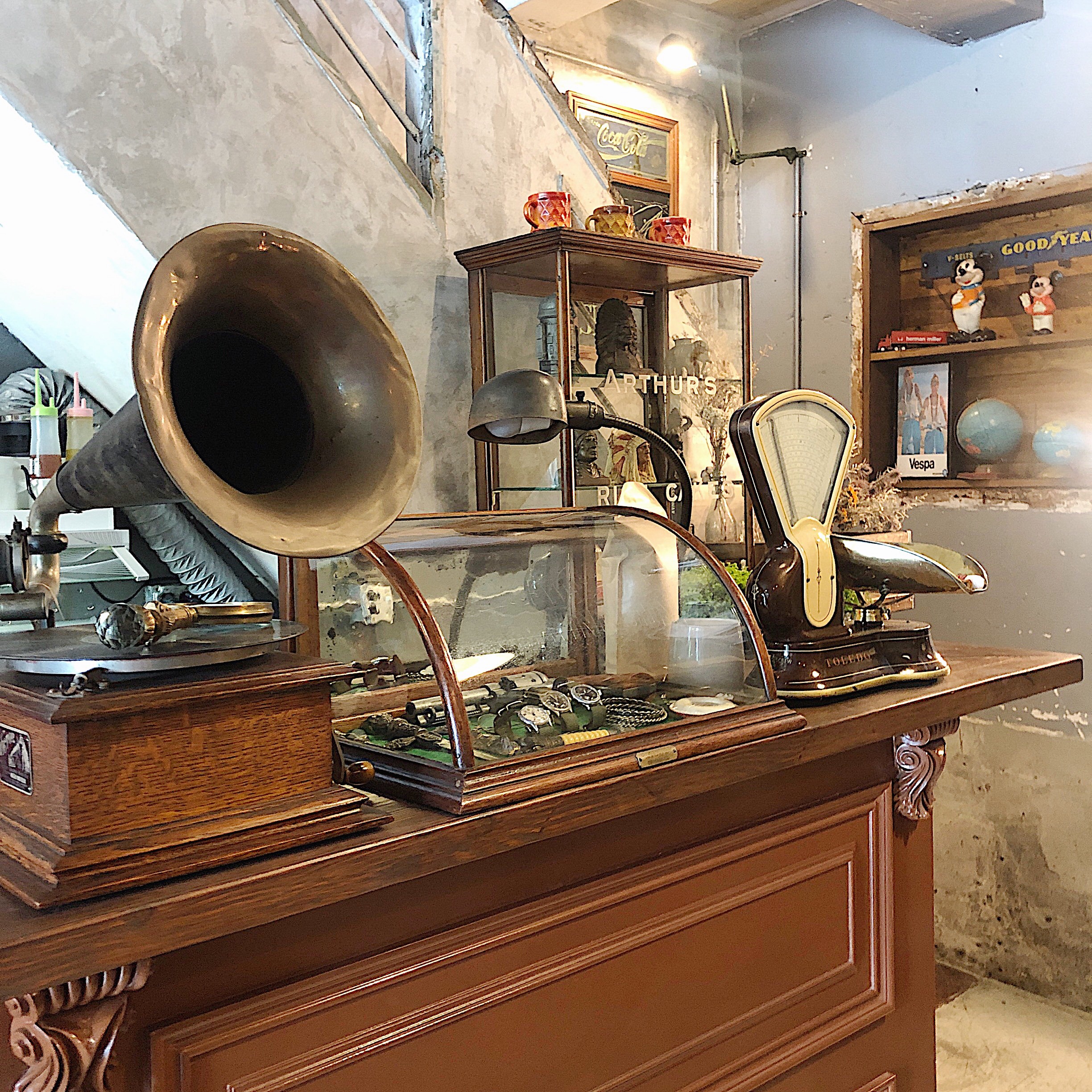 アンティークテイストの店内。